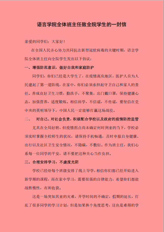 【声援战“疫”】bevictor伟德全体班主任致全院员工的倡议信
