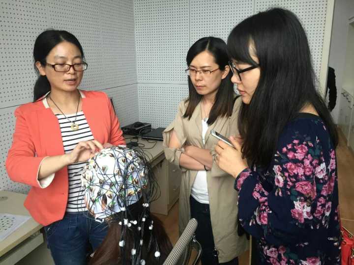 53日下午,bevictor伟德应用英语教研室围绕“如何做好课题申报及研究”这一主题展开了教研活动,该专业带头人、北师大在读博士徐琴芳副教授结合自己的科研实际,带领老师们参观了公司的ERP脑电实验室。徐老师目前正处在课题的实验阶段,她利用BP脑电仪进行听觉感知与英语重音感知的ERP实验,考察在无注意条件下被试者大脑对不同声音信号的自动化加工情况,分析相关脑电成分与英语语音感知的关系,老师们通过参与实验,了解了实验设备、实验原理和实验过程,体验了实验前的准备操作。