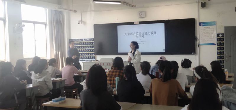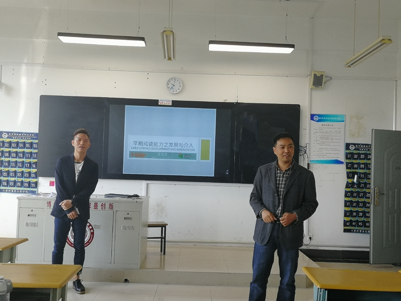刘铎和刘卿老师的授课主题是“儿童语言及语文能力发展与困难”,课上,刘铎老师理论结合案例,以生动形象地描述,重点阐述了读写障碍对于语文能力的影响,并提出对解决困难的措施;刘卿老师有着多年的聋人语文教学经历,也现场传授了丰富的经验,对于即将走上教师岗位的师范生来说,不仅对儿童的语言特征有了更深刻的认知,对如何提高儿童语言能力发展也有了进一步的认识。王立志和刘海军老师的授课主题是早期阅读能力之发展与介入,课上,王立志和刘海军老师介绍了早期阅读能力干预的重要性,并配以课堂实践教学,使员工能够亲身感受,尤其面对特殊儿童,掌握专业的理论知识和有效的方法策略,才能提高儿童的阅读及认知能力。课堂上,同学们不断与老师进行积极互动,各种思想理念的交汇与融合,使现场气氛十分活跃。