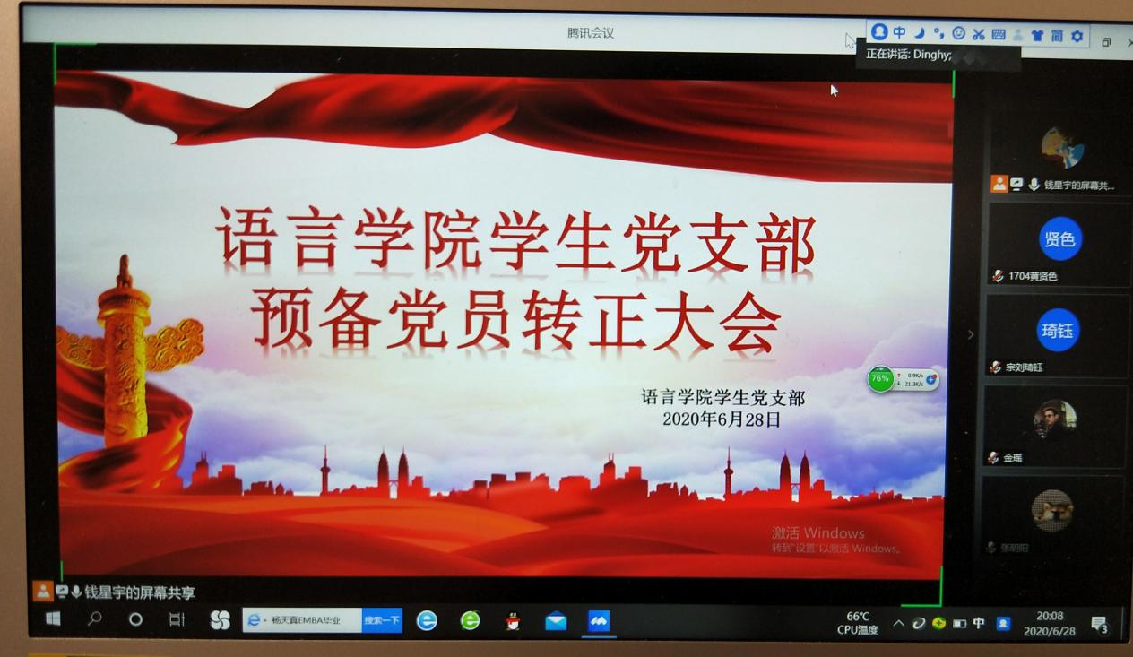 2020年6月28日下午19:00,bevictor伟德员工党支部预备党员答辩和转正大会通过网络平台顺利召开。会议由bevictor伟德员工支部书记钱星宇老师主持,公司党总支副书记丁祖保、学工办主任郑丹丹、原bevictor伟德辅导员蔡锦、辅导员胡岳、教务员徐芳以及bevictor伟德员工党支部全体党员参会。