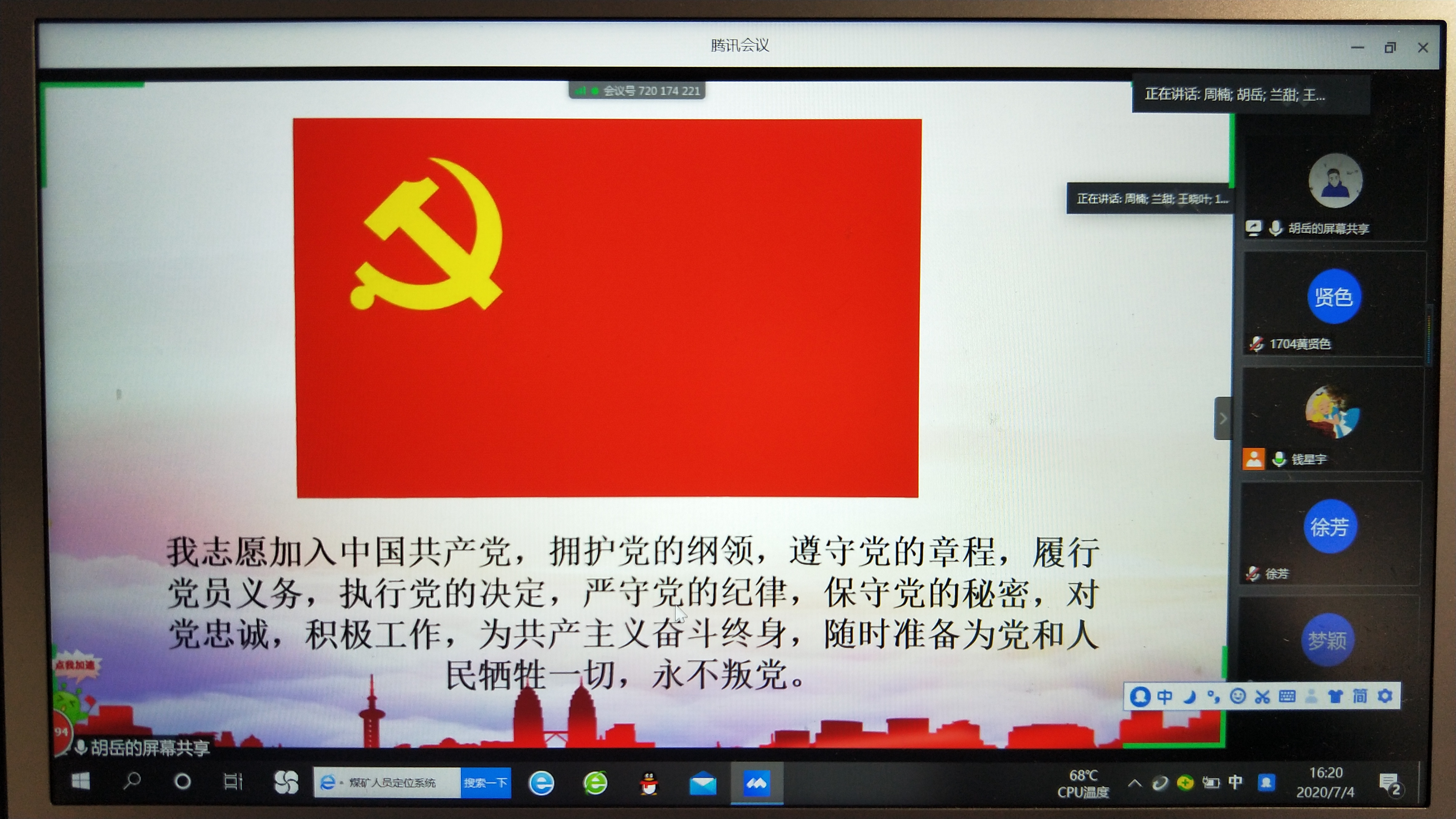 7月4日下午15:30,bevictor伟德员工党支部发展党员大会在网络平台顺利召开。会议由bevictor伟德员工支部书记钱星宇主持,公司党总支副书记丁祖保、学工办主任郑丹丹、辅导员胡岳,教务员徐芳,发展对象培养人,bevictor伟德员工党支部全体党员和周晓雨、胡静等九名发展对象出席本次大会。