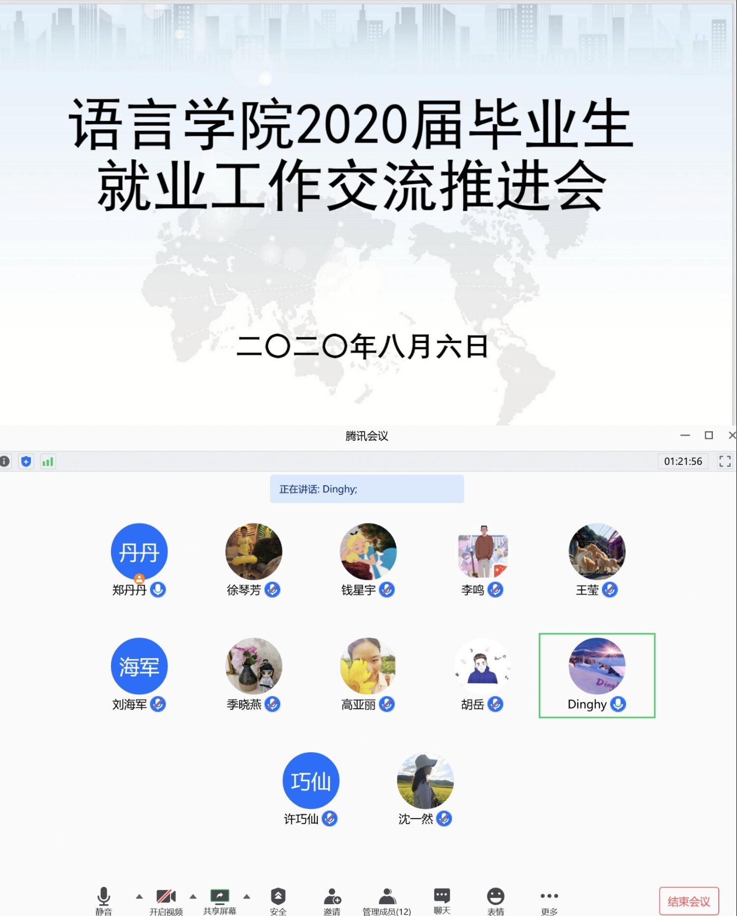 8月6日上午9:30,bevictor伟德召开2020届毕业生就业工作交流推进会议。会议由党总支副书记丁祖保主持,公司党政班子全体成员、各党支部书记和系主任、毕业班班主任以及全体辅导员参与了此次线上会。