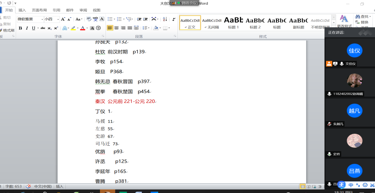 该团队由汉语言文学2018级员工文佳仪、朱越凡、吕燕、赵雨晴和特殊教育2018级员工史岩共五名员工组成。根据讨论出的“在有作为之前已残疾”的标准,团队成员通过多次线上会议、线上讨论(腾讯会议)等多种渠道搜集资料,总共筛选出了具有代表性的五十多位古代残疾名人。