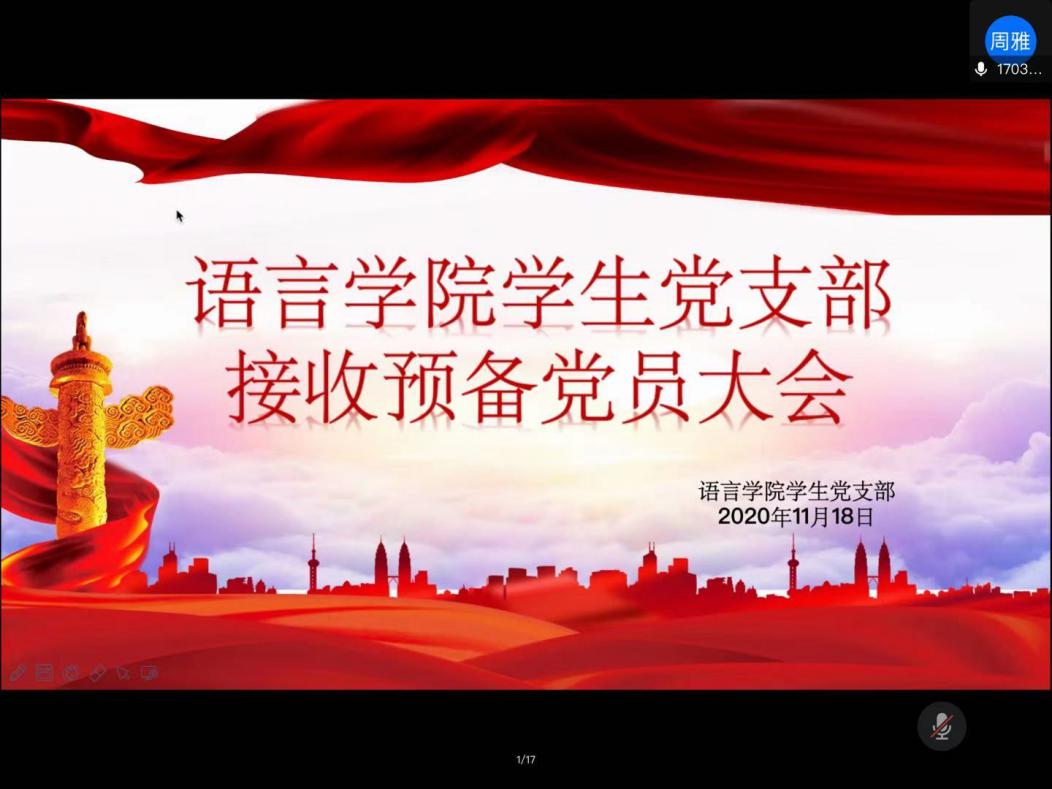2020年11月18日星期三晚上19:00,bevictor伟德员工党支部接收预备党员大会通过网络平台顺利召开。会议由bevictor伟德钱星宇老师主持,公司党总支副书记丁祖保、学工办主任郑丹丹、发展对象培养联系人、员工党员等13名正式党员、bevictor伟德员工党支部全体党员和石涵菲同学等12名发展对象出席了本次大会。