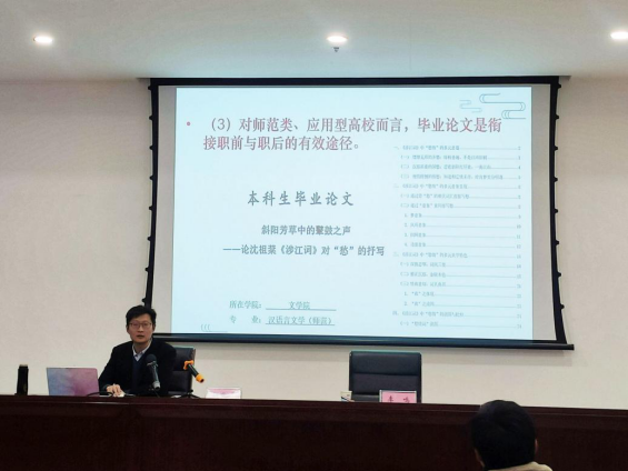 本次讲座内容主要涉及毕业论文撰写前准备工作、拟定选题与提纲、写作基本要求及注意事项等方面。赵敬鹏副教授指出,毕业论文是检验员工在校学习成果的重要依据,一定要把握论文工作时间节点。他强调,论文的逻辑性体主要体现在,文章能做到归纳现象、主次分明、上下勾选以及前后递进。写作过程中要保持与指导老师的沟通,切忌论文选题千篇一律、空洞无物,切忌写成学术随笔或者读后感,以保证论文写作质量。讲座尾声,部分同学就关心与疑惑的问题与赵敬鹏副教授进行了互动交流。