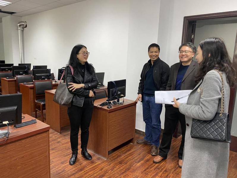 南京航空航天大学外国语公司副经理徐以中教授、大外部副主任梁道华老师等人带领公司一行人参观了“神经语言研究中心”、“口语口译实训中心”、“英语语音室”、“国别研究中心”等重点特色实验室,双方就实验室的搭建及其在教学与研究中的应用展开讨论,交流经验。随后还来到西区参观了可同时容纳500余人的“大学英语在线教学平台”,该平台建立在公司公共机房上,采用了资源共享和课程分时段管理的模式,有助于线上线下混合式教学改革和自主学习能力的培养。