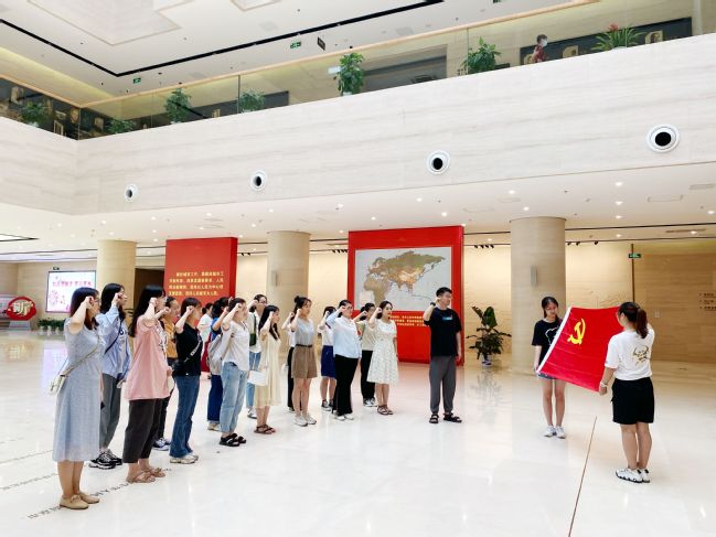 随后bevictor伟德员工党支部宣传委员胡岳老师,在馆内举行了“党史学习教育与思政实践”的专题学习,秉承南京特师“博爱塑魂”的校训,胡老师希望党员员工把握每一次学习的机会,重温党的历史,缅怀先烈们的丰功伟绩,坚定共产主义信仰,牢记党的光荣传统,清醒地认识到肩负的历史使命,倍加珍惜来之不易的大好局面,学史明理、学史增信、学史崇德、学史力行,率先垂范,为实现共产主义事业不懈奋斗。随后,一楼的序厅里,新一批发展的党员员工在胡老师的领誓下,重温入党誓词。