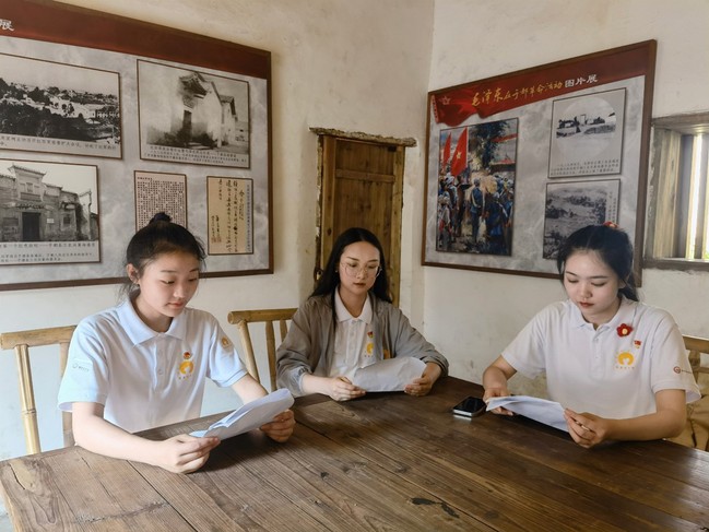 一路参观,一路思考。结束了中央红军长征出发纪念馆的参观之旅后,大家来到了长征前夕毛泽东同志旧居,开始一段“沉浸式”地学习。旧居中重现了毛主席在长征前夕生活工作的场景,大家逐一参观了旧居中赣南省苏维埃政府旧址,以及当时成立的土地部,粮食部工农检察部和妇女部等部门办公室。在放映厅中,辅导员翟玉杨老师和一起参观的党支部同学们一同回顾了参观经历,学习了长征精神的内涵。施婧雯同学说:“参观的图文、物件形象地再现了红军的光辉足迹,讴歌了红军坚韧不拔、团结战斗的顽强意志和革命精神,令我印象最深刻的是场馆里展示的一幅由草鞋拼成的祖国地图和那些雕像,历经了时间的考验,向后来人展现了那份历史的厚重感,诉说着红军战士在那段艰苦的岁月里如何并肩作战,谱写了一段段光辉事迹。毛主席曾说过,吃水不忘挖井人。革命先烈们前赴后继,用生命踏出了一条长征之路,它也是一条用鲜血染红的道路。正是因为他们的无畏和担当,才换来了如今蓬勃发展的新中国,在今天,这种精神更应世代相传,我们要弘扬老一辈艰苦奋斗的作风,不畏艰险,发奋图强,从当下做起,完成好暑期实践活动,走好新长征。”丁佳雪同学说道:“我们看到了无数革命老军的战争形象,看到了无数革命老军艰苦抗战的故事,更看到了红军长征的不怕困难、勇往直前的红色精神,战争集结地的号角吹响在耳畔。在毛主席的故居,领略体会了毛主席朴素踏实的工作作风,简陋的住所映射出毛主席日夜操劳,为人民谋幸福的身影,不禁感慨,这就是人民的英雄,人民的领袖!我会继续向革命先辈们学习,在今后的学习工作中,脚踏实地,奋勇前进。”
