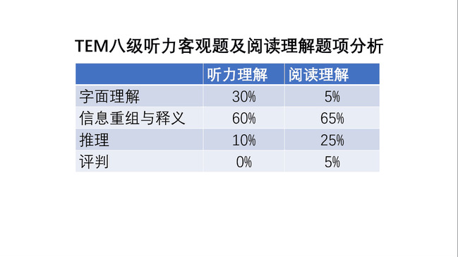 王成林教授主要从事专业英语教学和考试研究,长期从事英语专业考试阅卷和命题工作,他的讲座内容详实,干货满满。首先,他为同学们讲述了专业八级的相关信息,包括考试目的、考试依据、发展过程、试题特点、题型等。之后,对于专业八级考题的各题型进行了分析并给出了备考经验。对于听力部分,除了常规化的练习,更重要的是要锻炼自己的英语思维和阅读速度。在阅读理解部分,与以往考试不同,专业八级考试阅读篇幅很长,同学们要读整篇文学作品,多读外刊、长文章。阅读理解包括三种题型,字面理解题、信息重组与释义题、推理与评判题,同学们要重点把握信息重组与释义题,这是拿分的关键。对于解答题,王成林教授分享到尽量要用短语回答,词数控制在10词以内。在改错题方面,员工要从词汇、语法以及篇章结构三方面来分析。对于翻译来讲,员工最好能够跳出原文,彰显专业特色。在写作上,王教授分享了他的“cream”理论,即contrast,rhyme,repetition,alliteration以及metaphor。有些老生常谈的词汇英语专业员工最好能够避免使用等经验。通过本次讲座,同学们对于专八考试有了系统的了解,对于备考也有了一定的方向。
