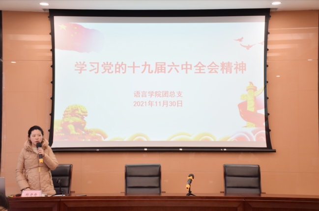 11月30日下午,团总支书记郑丹丹从党的十九届六中全会最重要的成果和马克思主义中国化的三次飞跃两个部分对党的十九届六中全会精神进行解读。党的十九届六中全会审议通过的《中共中央关于党的百年奋斗重大成就和历史经验的决议》是一篇马克思主义的纲领性文献,是新时代中国共产党人牢记初心使命、坚持和发展中国特色社会主义的政治宣言,是以史为鉴、开创未来,实现中华民族伟大复兴的行动指南,是建设世界上最强大的长期执政党的理论指南。随后,从习近平新时代中国特色社会主义思想解决的历史任务、一系列原创性的治国理政新理念新思想新战略,以及中华文化和中国精神的时代精华等几大方面,通过党的百年奋斗重大成就和历史经验向团学干部介绍了为什么习近平新时代中国特色社会主义思想能够与毛泽东思想、中国特色社会主义理论体系一样成为一次独立的历史性飞跃。