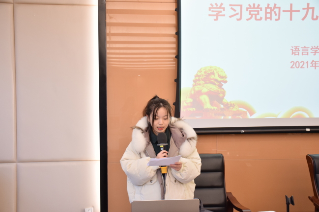 员工会张文婷、新媒体中心沈玉洁、青协分会钱怡君,依次讲述了自己对党的十九届六中全会精神的理解,崔盛丹同学从青年一代的影响角度出发,谈到作为青年人更是要守护好、继承好、发展好这来之不易的新时代,要肩负起“强国一代”的历史责任,不忘初心、不负韶华。