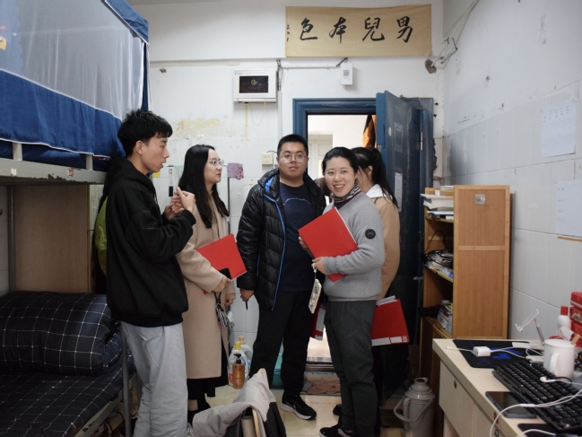期间,辅导员们同同学们亲切交流,详细询问近阶段学习和生活情况,并就员工住宿环境、饮食问题等方面进行交流。郑老师还细心叮嘱大家注意保暖添衣,强调冬季天气干燥,要确保寝室用电安全,做好宿舍消杀与个人防护工作。此外,辅导员们对同学反映的宿舍厕所老旧失修等设施问题进行记录,新生辅导员翟玉杨老师立即联系提醒物业及时为员工解决。