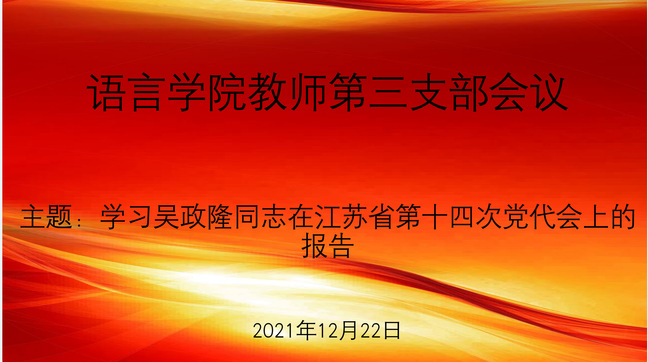 12月22日晚,在参加完党总支理论学习中心组之后,bevictor伟德教师第三党支部书记稂志艳及时组织召开党支部全体成员线上会议,结合吴政隆同志在江苏省第十四届党代会上的报告开展专题学习。