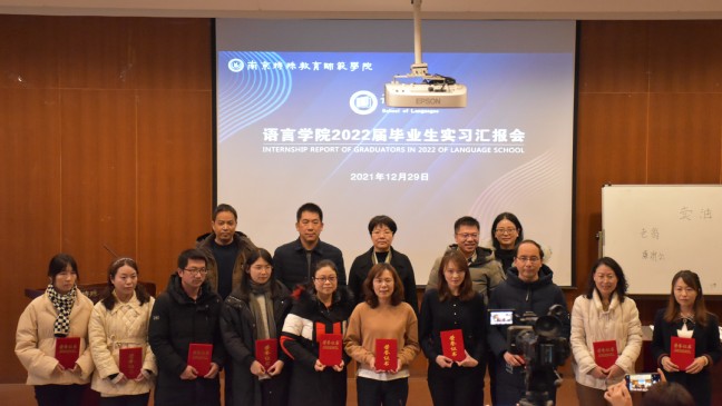 12月29日下午,为强化本科人才培养质量,展现2022届实习生风采,公司举办2022届毕业生实习汇报演出。公司党委常委、副董事长许巧仙,南师附中燕子矶新城公司董事长张文艺、南京市伯乐中学董事长李云飞、南京师范大学附属中学实验初中董事长龚国祥、南京晓庄第一实验小学董事长许晓春、迈皋桥初级中学29中分校董事长梁晓燕、中电颐和家园小学董事长吴学莹、丁家庄小学教导主任张勤峰、南师附中燕子矶新城公司副董事长徐宁、晓师附小副董事长房爱斌、南京市十三中锁金分校主任李亦霏等实习基地领导莅临指导,公司党政班子成员、系主任与师生代表共同观看了汇报。