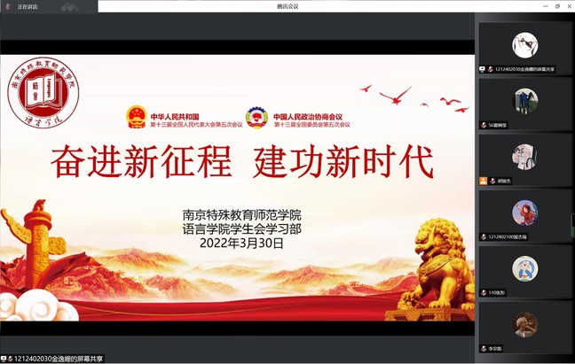 金逸珊同学从十三届全国人大五次会议的基本概况展开介绍,重点回顾了2021年的政府工作报告中经济运行、改革开放、人民生活、生态环境、国际外交等方面取得的重大突破。着重学习了2022年经济社会发展的总体要求和政策取向:一要保持宏观政策连续性,增强有效性;二要继续做好常态化疫情防控;三要坚持稳字当头、稳中求进。会上还学习了2022年政府工作的九大任务,号召同学们以实际行动把我国建设成为富强、民主、文明、和谐、美丽的社会主义现代化强国,实现中华民族伟大复兴。会上全体成员还一起观看学习了相关视频,深入感受中国的发展与变化。