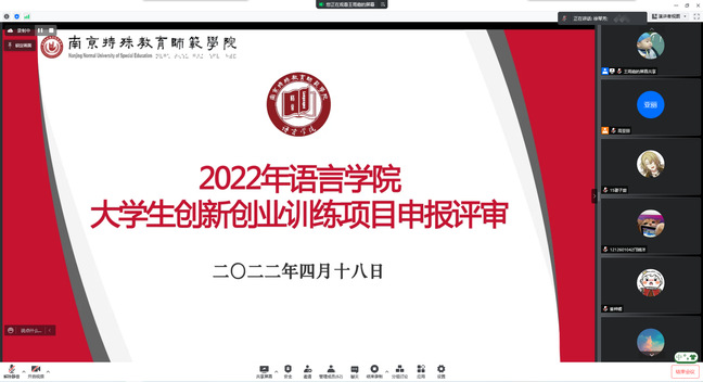 4月18日晚,公司举办2022年老员工创新创业训练计划项目线上申报评审会。由公司执行经理王东、党总支副书记谢军、英语系主任赵冬华、中文系国丽芸副教授、大学外语教研室王振环副教授等五位教师组成的专家评审组对申报项目进行评审。本次评审会由bevictor伟德副经理徐琴芳教授主持,项目负责人同学、项目指导老师、项目组成员等参加会议。