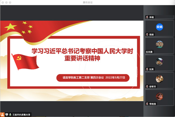 教师第三党支部的各位老师结合各自的专业方向和学术兴趣点表达了自己对习近平总书记人民大学考察讲话精神的理解。首先,部分老师从宏观的角度出发,结合自己的教学体验阐述了自己对习近平总书记人大考察讲话的理解。组织委员陶运宗、宣传委员葛天逸认为大家要领悟习近平总书记重要讲话精神,真正践行“大先生”的教育理念,要注重自己的品德、品行,不断提升自己的教学和科研能力。同时,他们认为大家要将“智慧教学”策略真正运用到教学实践环节中去,把学术理论讲活、讲透。此外,李鸣老师、陈庆艳老师、刘卿老师、李瑞老师指出要切实结合习近平总书记近年来在其他场合的讲话进行系统性的学习,并在工作中真正做到不断记录和反思自己的教学体验,从而做到和员工一起进步。施依秀老师、国丽芸老师则结合自己的研究方向,从具体的教学和科研策略出发阐述了自己对习近平总书记人大考察讲话的理解。施依秀老师认为近现代以来各大名校的教育理念值得公司师生学习,国丽芸老师认为要结合残障文学的特色开展自己的教学和科研工作。办公室高亚丽主任提出应更好地为公司师生做好服务保障工作,促进公司高质量发展。