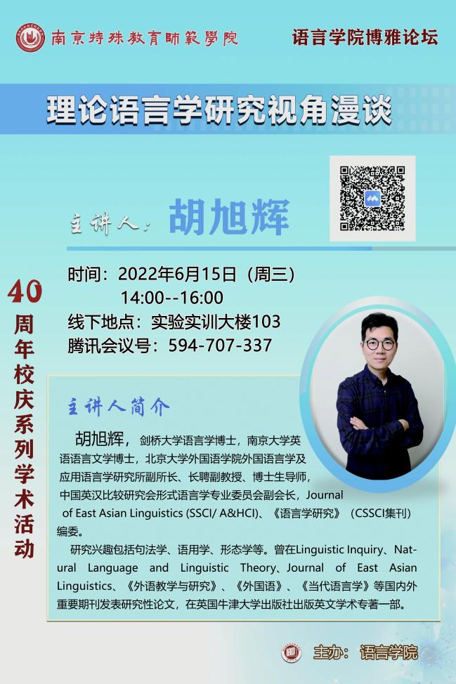 【学术预告】6月15日 胡旭辉《理论语言学研究视角漫谈》