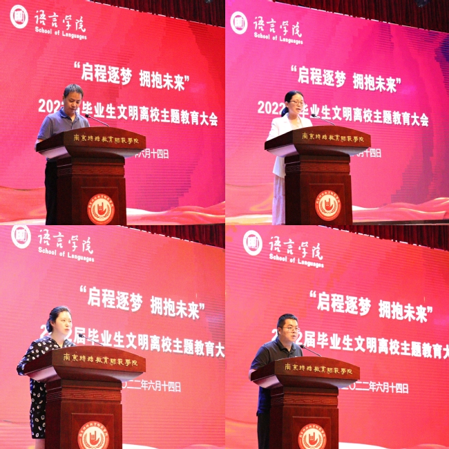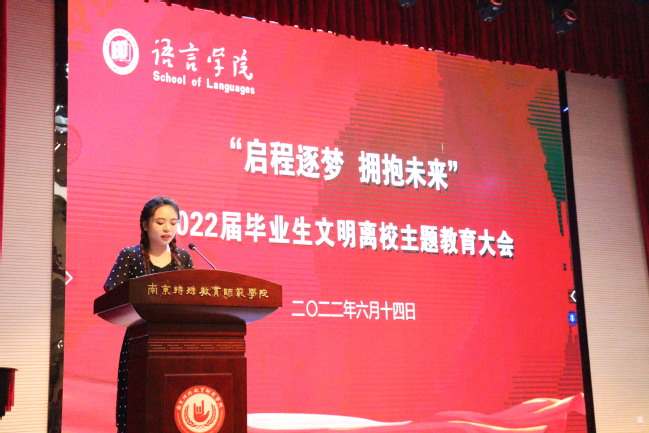 学工办主任(团总支书记)郑丹丹做了文明离校主题教育,她从安全、感恩、诚信、法治等方面,提醒毕业生调节好离别的情绪、做好离校途中的人身财产安全,引导毕业生爱校荣校、感恩师长、服务社会。随后,毕业班辅导员杨菊鑫老师布置了离校前的相关工作。