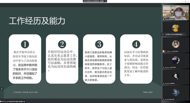 公司团学工作“每月之星”竞选者依次发言。竞选者结合精彩简明的PPT,用生动流畅的语言简述了工作经历和感想体会,展示了自身优势特长,提出了未来工作展望。经公平公正的投票环节,共选出8位“每月之星”获奖者。