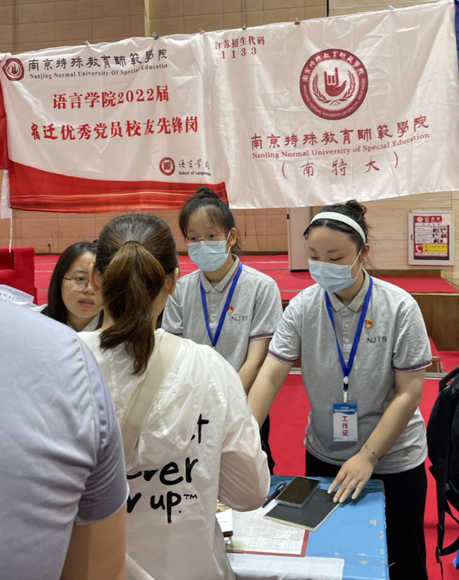 由于疫情影响,在公司党总支的精心策划和学工办的组织协助下,今年高招咨询会选派了五位2022届刚毕业的党员员工,员工们秉承着爱校荣校的情怀投身招生宣传工作,几天奔赴宿迁各大招生现场,吸引当地优秀学子报考南京特师。更为感人的是,宿迁2006届员工——宿迁市宿城区启智公司高闻翼副董事长也不畏酷暑,提前做好PPT,为母校的两场咨询会倾情解说,使考生及家长充分了解公司的资源优势和办学特色,同时也深刻地感受到南京特师人的初心如磐、奋楫笃行的精神。两代党员员工薪火相传的爱心举动向广大考生及家长展现了公司博爱塑魂、积极向上的精神风貌和团结奋进、踏实真诚的责任担当,创新了疫情常态化管理下的招生宣传新模式,同时也拓宽了员工助力母校发展的新实践,既为下半年即将迎来建校40周年增光助力,又为祖国101周年华诞献上厚礼。