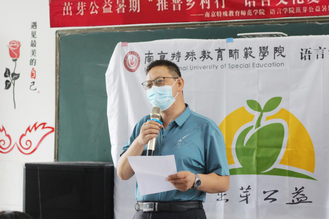 公益暑期支教队队长蔡依彤介绍了此次夏令营即将开展的诵、写、演、唱相关的语言文化课程,并表示将恪守从教准则、严于律己,为员工树立良好榜样,积极丰富员工的知识面,提升综合素质。随后,她带领全体师生宣誓,明确自身责任,确保夏令营顺利开展。