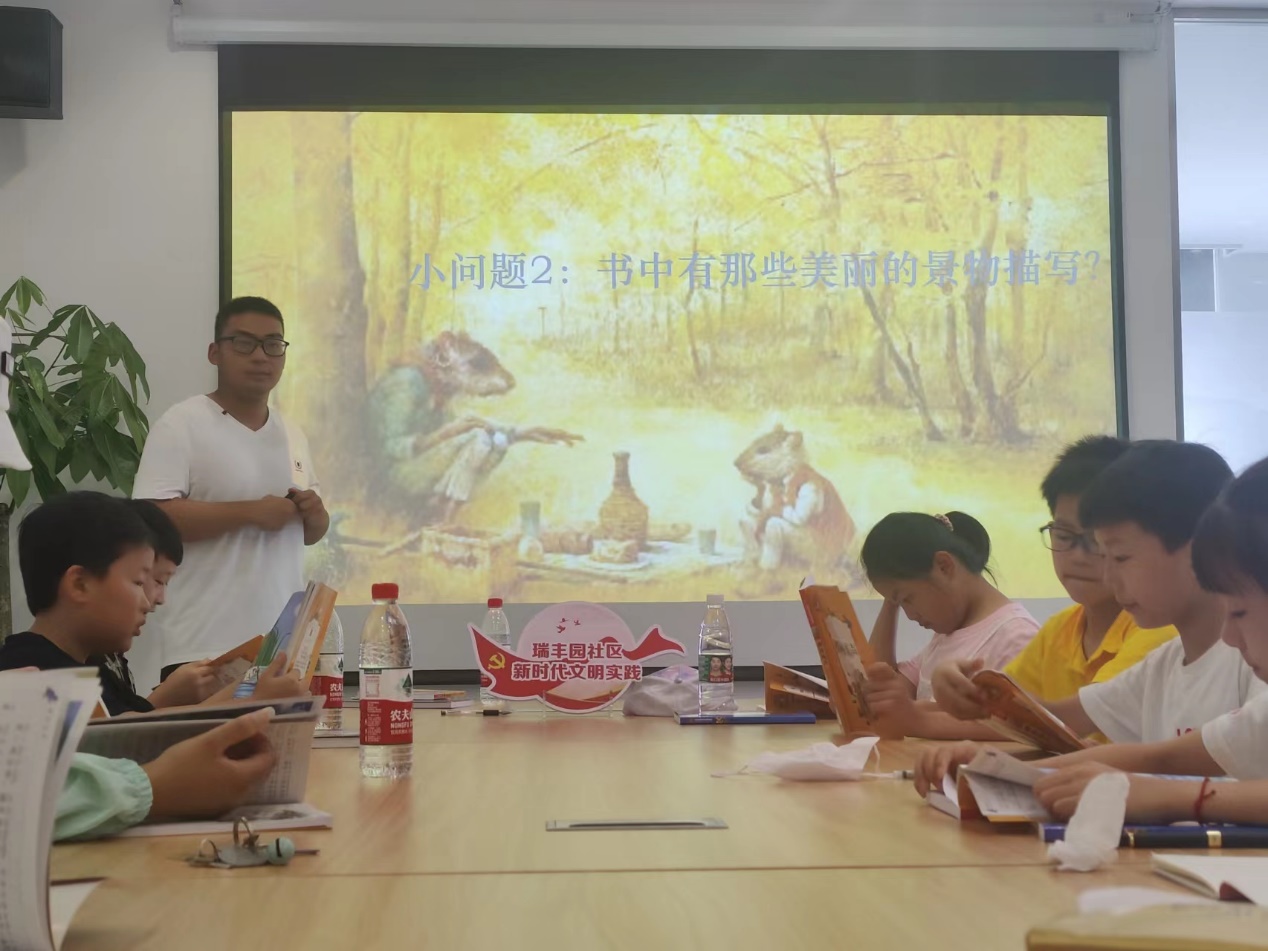 7月25日上午,为积极响应教育部号召,发扬新时代青年创新创造精神,bevictor伟德“白桦林”文学疗愈团队全力以赴,持续在社区开展暑期“走进文学疗愈,‘阅’享阳光生活”线下列活动。经过一周的课程打磨,“白桦林”团队再次来到迈皋桥瑞丰园社区党群服务中心,带领社区的孩子们一起阅读儿童文学佳作《柳林风声》。