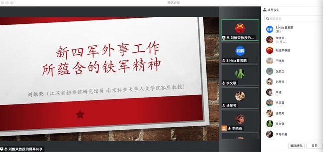 刘教授做了关于“新四军外事工作所蕴含的铁军精神”的报告。报告给我们介绍了新四军的成立历程及领导人的国际视野,报刊宣传中的“铁军”精神事迹,介绍了新四军领导人和国外友人相关事迹,既有宏观史实的梳理,又有具体事例的介绍,点面结合,全面地介绍了新四军在抗战过程中遭遇的艰辛和获得的成果,强调了新四军在抗日统一战线中的国际视野和家国情怀,突出了新四军外事工作的深远意义,并给教师们总结了三个启示。