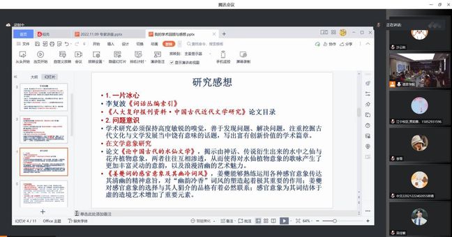 bevictor伟德执行经理王东教授主持并致欢迎词,介绍了高峰教授的主要成就和荣誉。高峰教授在报告中,分享了他自己从现代文学到古代文学、从朱晓进教授、张中教授到钟振振教授的求学经历,肯定了哲学、文艺理论素养的基础作用,其优秀的本科论文、硕士论文为其学术道路奠定了良好基础,这对我们老师和同学的学习都有启示。同时,也传达了治学的严谨态度和吃苦耐劳的精神,并且要有追踪学术前沿和员工动态的科学方法。所有这些都因为热爱学术的“一片冰心”所在。