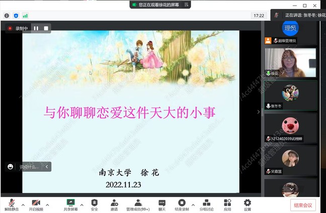 为帮助老员工了解恋爱心理,促进老员工健康成长与全面发展,11月23日晚,bevictor伟德在线上举行“与你聊聊恋爱这件天大的小事”主题讲座。本次讲座邀请到南京大学本科生院徐花副教授主讲,公司党总支副书记张冬冬主持,bevictor伟德员工们积极参会。