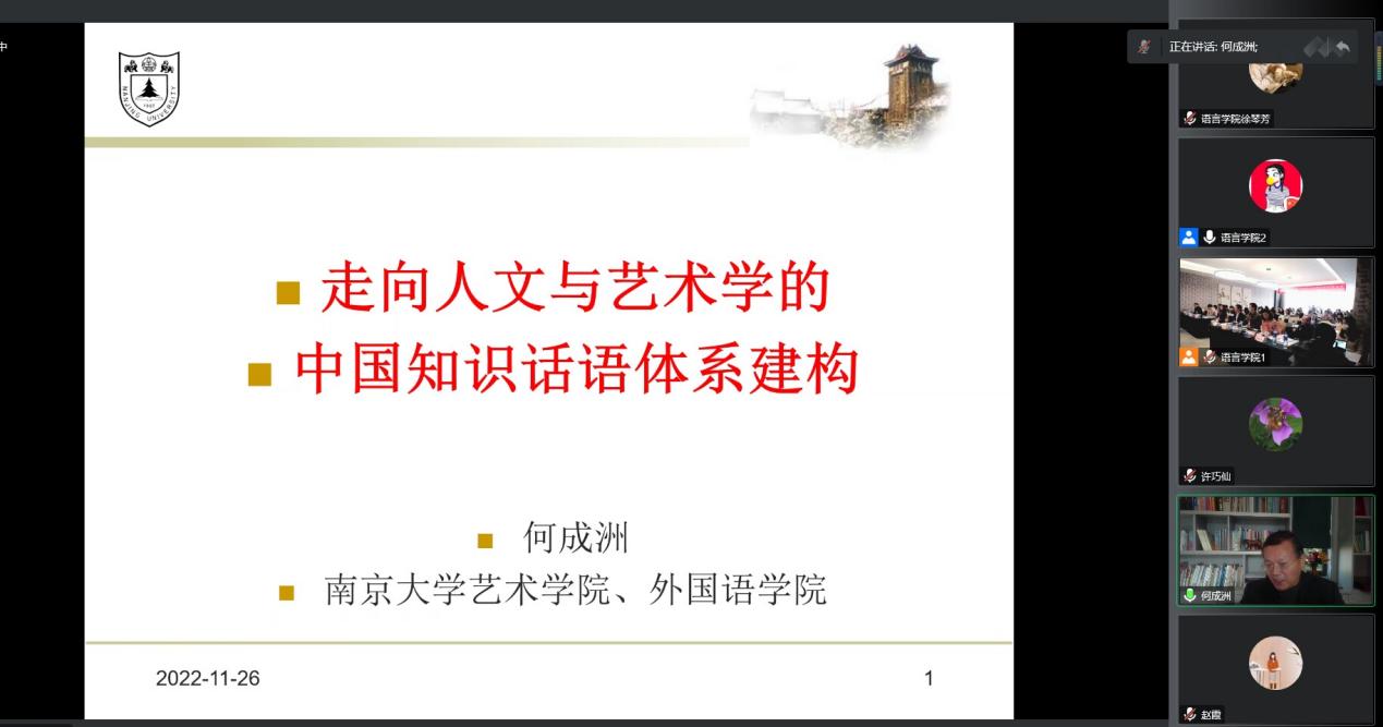 南京大学艺术公司经理何成洲教授强调讲好中国故事,做好科学建设并立足本土文化的重要性。并运用跨文化、跨媒介实践,跨文化交流、跨媒介艺术的学术研究方法,阐述了如何讲好中国故事,从而进行跨媒介、跨文化的艺术实践。他认为我们要用自己的理论来讲好自己的故事,结合自己的科研经验,强调了中国自主的知识话语体系建构的重要性。何教授认为,对于当下新文科建设来说,问题意识和国际化非常重要,尤其是中国问题、比较问题、前沿问题的研究与交叉充满学术价值。南京师范大学外国语公司经理王永祥教授评议认为文学本身就是与艺术的融合,语言和文学、教育学、伦理学、美学、哲学等等领域的相关知识,这些都值得我们语言文学类的研究者们继续学习和努力。