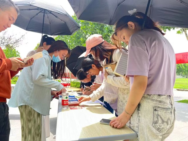 活动开始,现场气氛热烈,同学们纷纷在留言纸条上,写下这一年在江宁校区学习生活的感受和未来的期盼,也表达了自己即将离开江宁校区的不舍。同学们用笔传情、以词达意,向江宁校区老师、同学表达了感激之情。每位同学写完自己的祝福以后,可以随机领走其他同学的祝福卡片。通过这种卡片上的交流,同学们不仅感受到了彼此之间的信任和支持,也对未来有了更明确的规划和方向。与此同时,22级员工还纷纷写下自己想对学弟学妹们说的话。这些承载着祝福和希冀的卡片将在迎新季送达23级萌新手中。