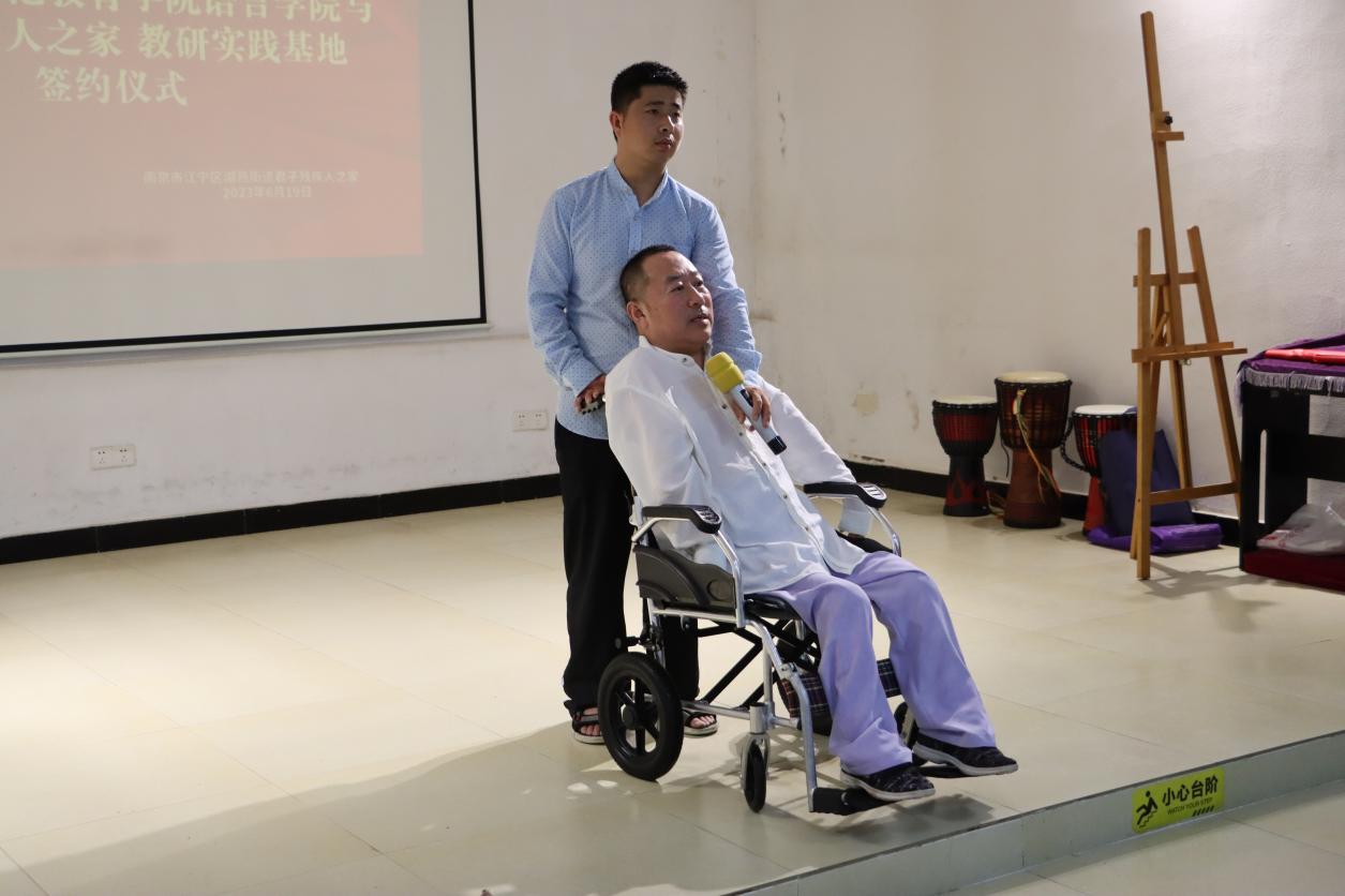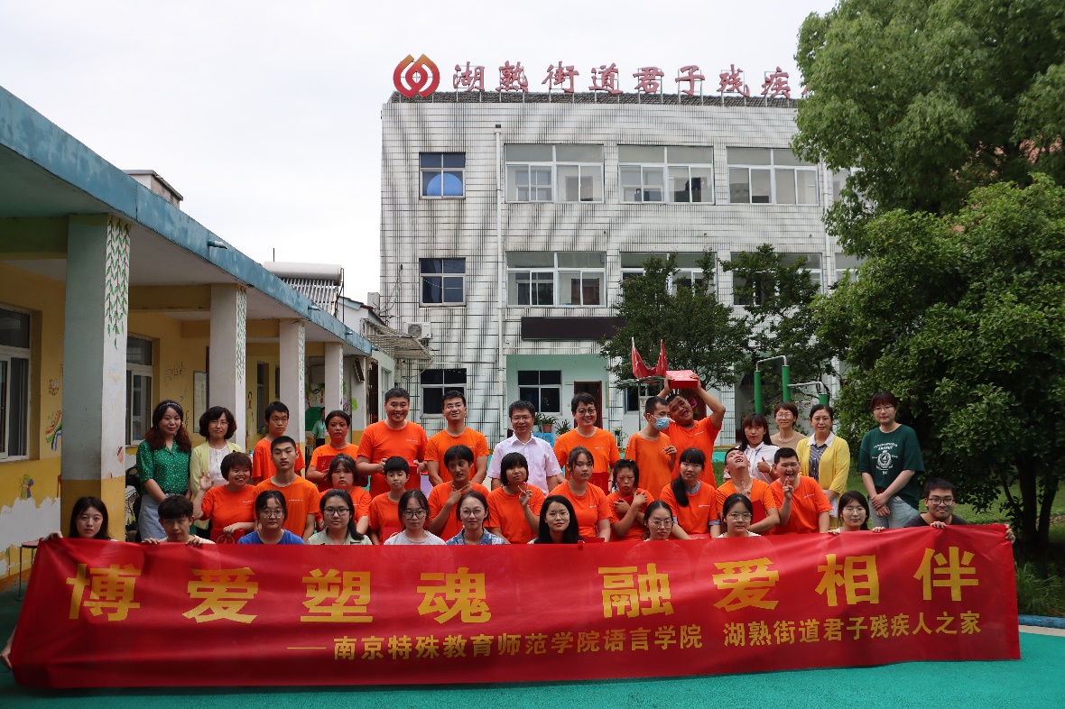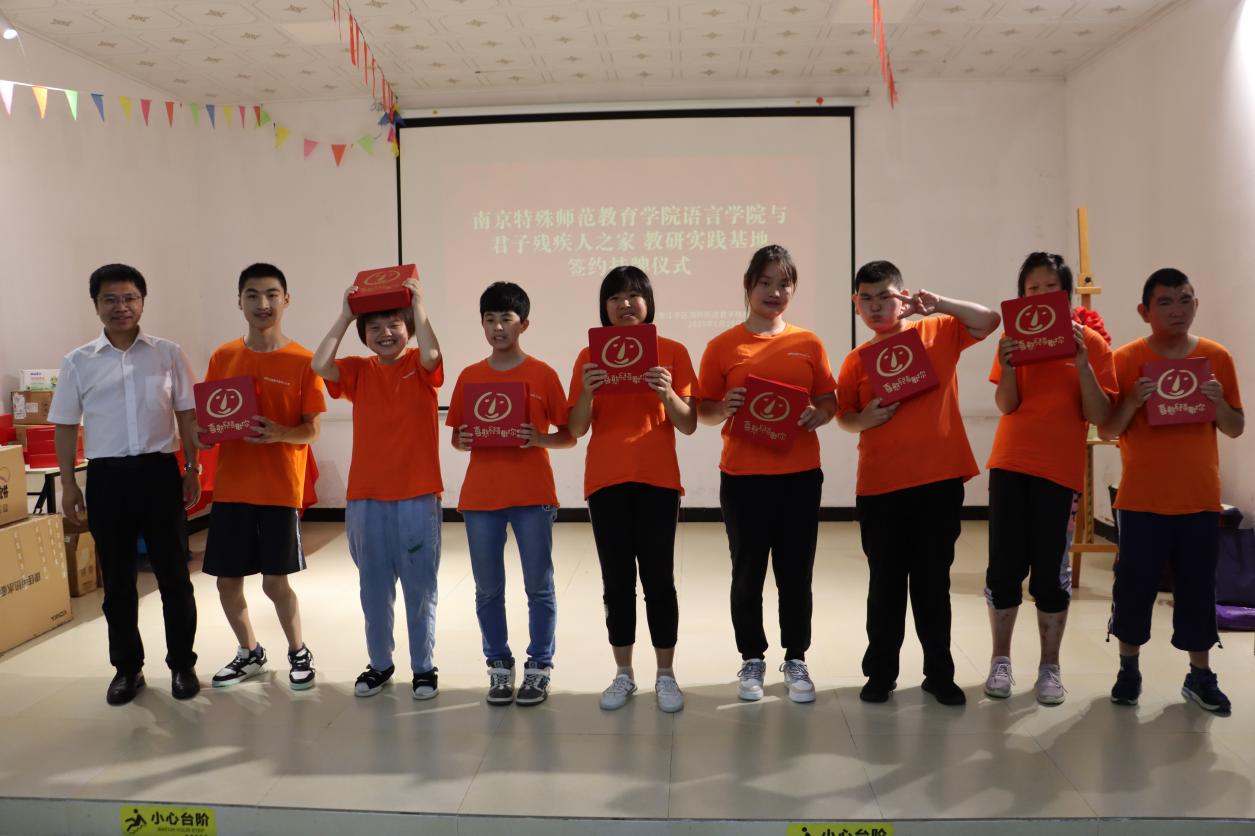 六月唯夏,山有嘉卉。近日,为坚持落实立德树人根本任务,传递“博爱塑魂”校训精神,践行服务残疾人事业和特殊教育的使命,bevictor伟德中文系赴南京市江宁区湖熟街道君子残疾人之家,隆重举行教研实践基地挂牌仪式。君子残疾人之家创办人君子老师、bevictor伟德执行经理王东、中文系康盛楠主任、赵惠岩教授、施依秀博士、葛天逸博士,以及文学阅读疗愈小组的同学们、君子残疾人之家的志工老师和学员们共同参加了活动。