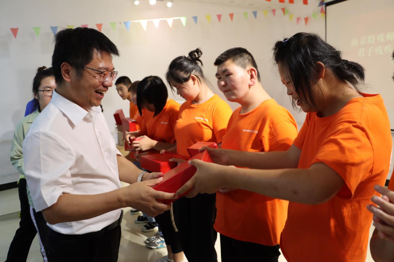 挂牌仪式结束后,王东经理给残障孩子们赠送了爱心物资。孩子们接到礼物,感到特别开心,每个人的脸上洋溢着灿烂的笑容。