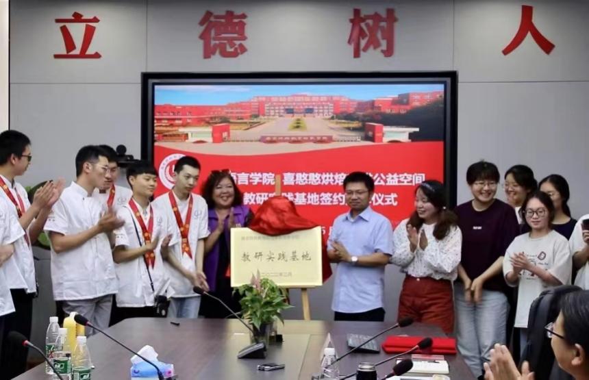 仲夏六月,万物华实。近日,为进一步加强公司与社会公益组织合作,践行以员工为中心、博爱育人的理念,大力推进老员工实践走深走实,bevictor伟德诚邀喜憨憨烘焙咖啡公益空间一行来校参观访问,并举行教研实践基地签约、授牌仪式。机构负责人刘杰女士、机构部分学员及家长代表,bevictor伟德执行经理王东、徐琴芳副经理、中文系康盛楠主任、赵惠岩教授、施依秀博士、葛天逸博士,以及文学阅读疗愈小组的同学们参加了活动。