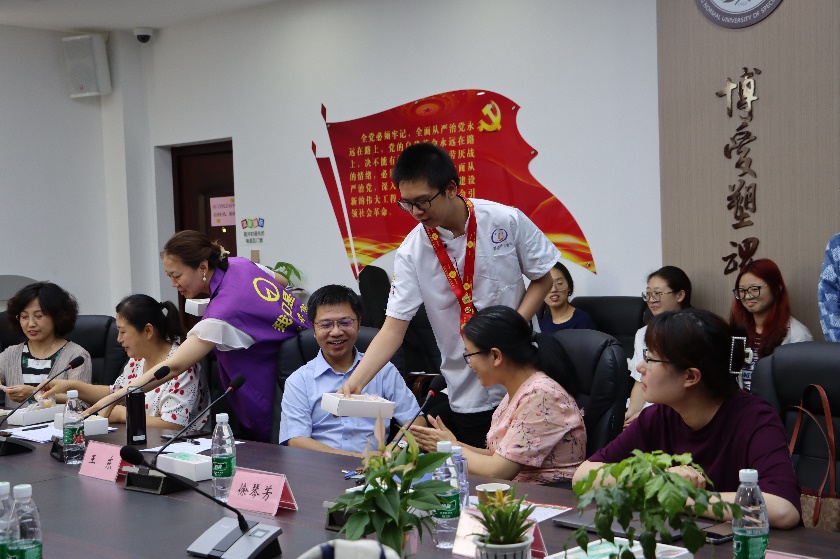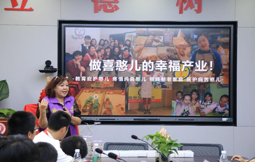 随后,机构负责人刘杰女士发言。她生动介绍了“喜憨憨”品牌诞生、成长的历程。作为一个社会企业品牌,它秉持“终生教育、终生照顾”理念,丰富的案例展现出特殊教育和残疾人事业的强大生命力和广阔前景。这令现场师生感到非常振奋,收获很大。刘杰女士表示,成立实践基地是搭建了一个平台,希望能促成更多行业专家、企业家、社会知名人士和爱心人士们,与家长和宝贝们之间的交流和共建。