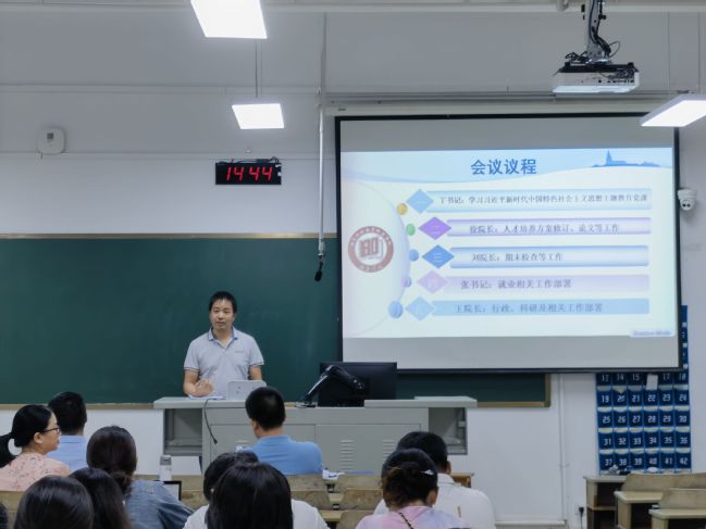 徐琴芳副经理对本学期的教研和实践教学等工作进行了总结,鼓励大家倾心投入到教学研究工作中来;刘海军副经理重点对期末教学检查的相关工作做了总结,并对下学期教学工作提出了建议和要求。张冬冬副书记部署了2019级、2020级员工的就业工作推进计划。