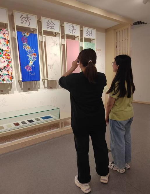 同学们的足迹迎着丝绸的陈迹,慢慢探索丝绸文化的源头与历程。从黄帝元妃嫘祖教民育蚕到江南多地建立蚕种场,从蚕的一生到蚕桑实际应用,大家从多方面认识到了蚕桑文明的延续与发展。馆内的藏品件件精致秀美,更承载着深厚的文明渊源。吴服、唐装、和服、韩服等各色服饰都生动地反映出了各个朝代丝织业的繁荣景象。透过华衣锦服,队员们不仅看到了蕴藏其中的诗意风情,也学习到了各代的礼仪制度,增强了对丝绸背后的历史文化的学习兴趣。