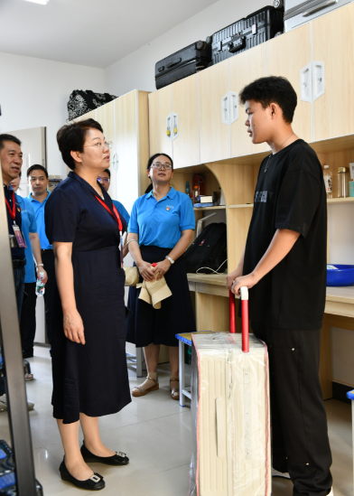 许巧仙副董事长为2023级英语专业的新生颜辉送上迎新大礼包,并鼓励他勤奋学习、苦练本领、增长才干,让学习的灯塔照亮人生前行的道路,为社会做出更大的贡献。颜辉同学感谢校领导和公司的关心,表示会珍惜学习机会,树立远大理想,积极担当奋进。随后,许董事长和公司领导去看望了已入住宿舍的新生。