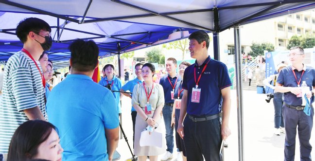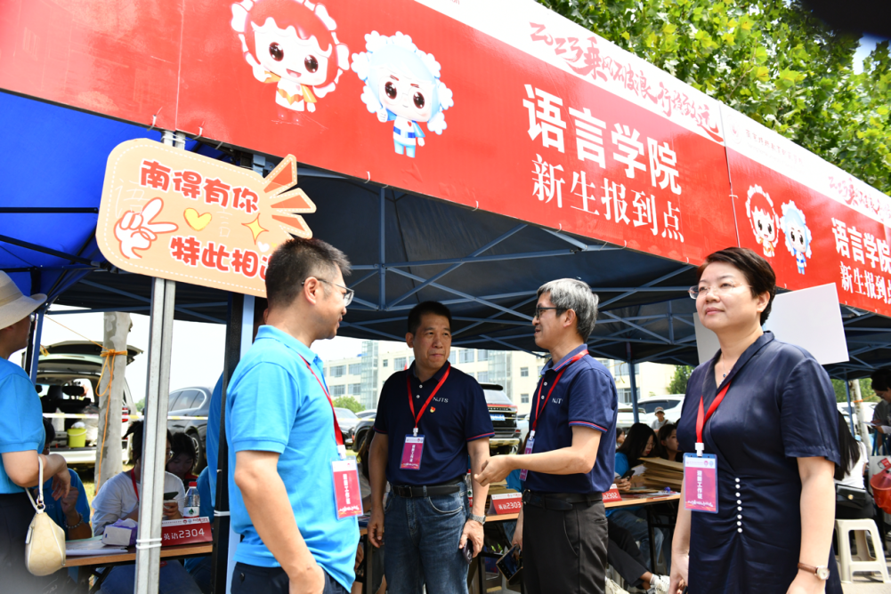 迎新当日,公司党总支书记丁祖保、执行经理王东、副经理徐琴芳、刘海军,党总支副书记张冬冬来到江宁校区,在校门口迎接新生,与其亲切交谈,从生活到学习,无一不流露出对新生的关爱。