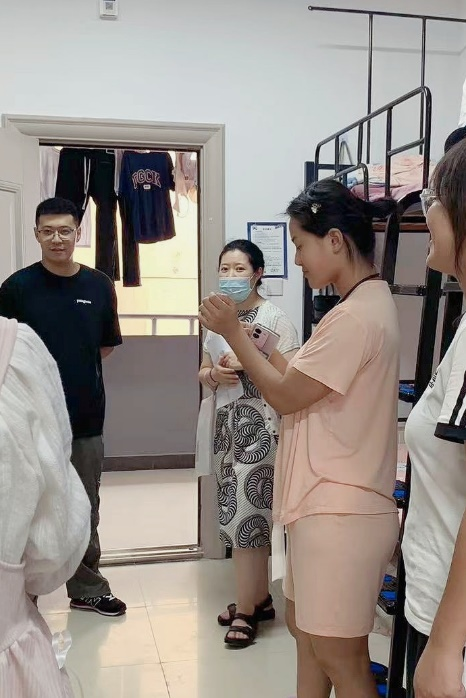 “大家住的还习惯吗?”“最近可能会降温,空调温度可以大家商议好开关,不要着凉。”字字句句简短的问候中让萌新们倍感亲切。走访期间,两位辅导员也询问了新生们到校后的饮食、起居等方面的情况,并及时了解他们有无生活上的不适应,部分同学们也相应反馈了自己所遇到的情况及生活所需。辅导员们耐心地为他们答疑解惑,在自己能力范围内做到当场问题当场解决,不能解决的问题做好记录或指导他们对接哪些部门,做到点对点的落实到位。