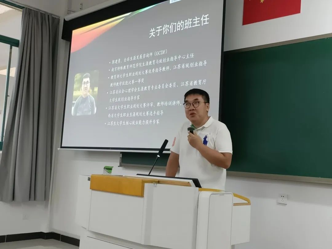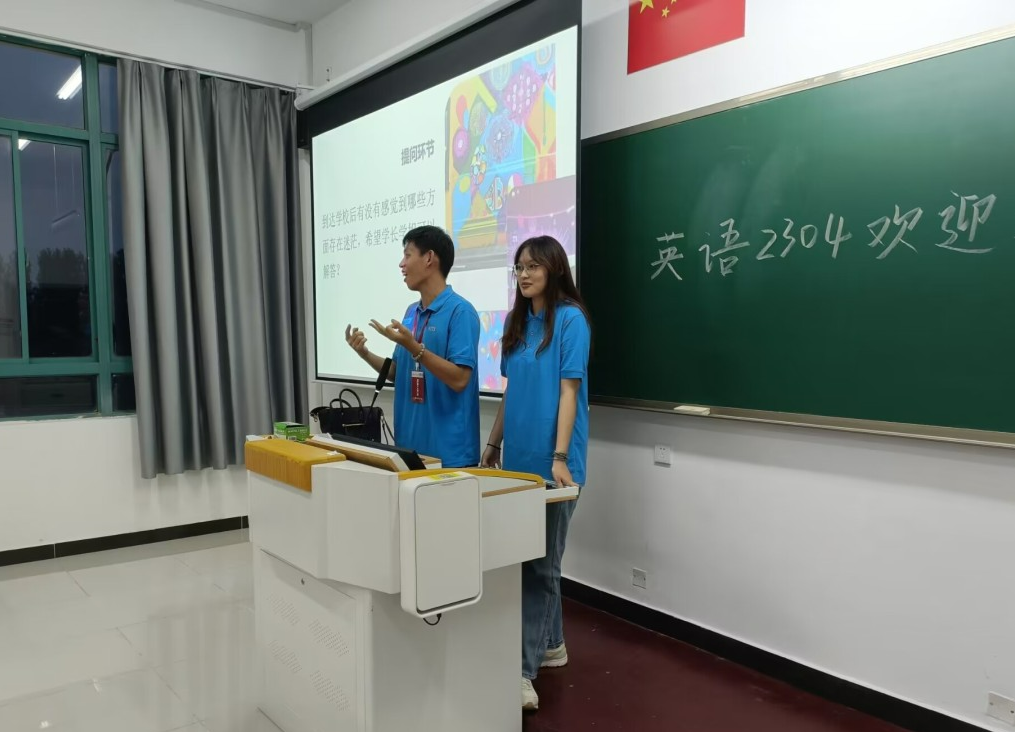 在中文2303班,郭建勇老师以轻松幽默的脱口秀开场,以“生涯助人者、野兽派、文艺中年”三个关键词展开,表示在任教的第二十年遇到大家,希望在未来的四年甚至是九年里,帮助同学们成长和发展;三位新生副班也策划开展了“幸福大转盘”游戏,通过七个老员工涯发展相关的问题,串联起班级同学的相识、相知以及对未来的展望。这些活动不仅增强了班级之间的凝聚力,也为未来的工作和活动打下了坚实的基础。