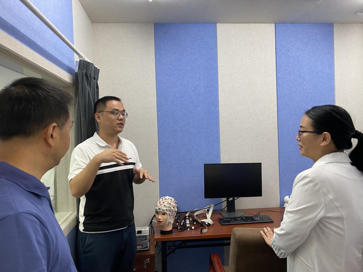 研讨结束后,李善鹏老师带领我们参观了工信部重点实验室:语言信息智能处理及应用实验室,以及脑电实验室和语音实验室,向大家展示了最新的数据采集技术和设备使用方法。同时,系主任汤平也为我们分享了他们在科研上开展的各项实验研究。