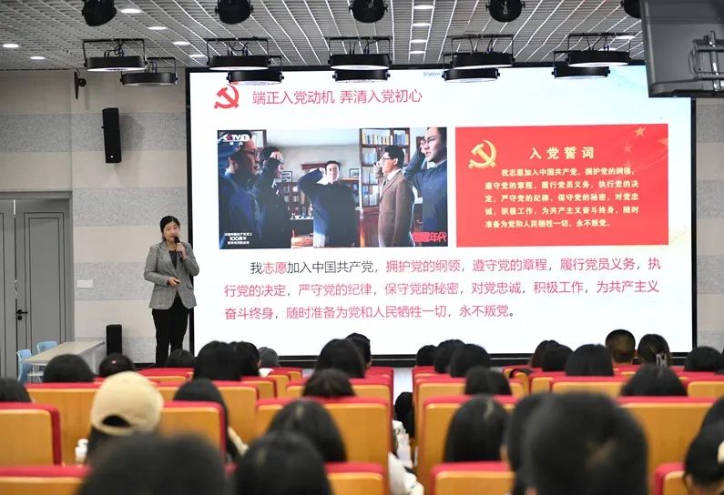 张冬冬副书记主要围绕中国共产党的初心和使命、端正入党动机、理清入党初心、老员工入党的标准与条件、发展老员工党员的工作流程等方面内容展开讲述。她结合热门影视剧《觉醒年代》中的先烈事例,激励新时代青年员工承担起国家与社会赋予的重任。张冬冬副书记还阐明了中国共产党的地位、性质、宗旨,希望在座青年谨记全心全意为人民服务的宗旨,为中国的繁荣昌盛添砖加瓦。