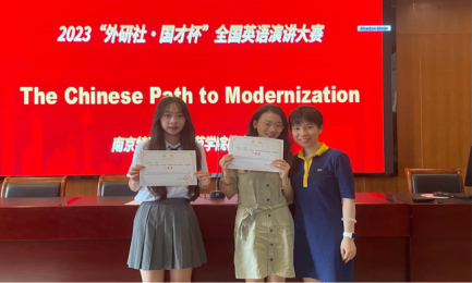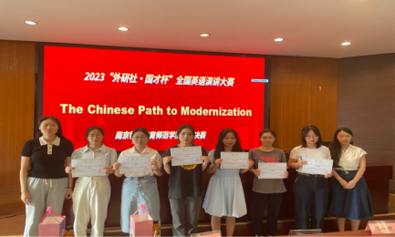 英语演讲大赛校内决赛于2023年6月21日顺利举行,进入决赛的选手需分别进行1分钟的英文自我介绍,进行现场演讲展示,题目为The Chinese Path to Modernization,并由评委老师就演讲内容进行提问,决出最终名次。经过现场5名评委老师:江枫、夏君鹏、沈一然、陈璐、倪韵之的点评,共有两名同学获得一等奖,六名同学获得二等奖,十二名同学获得三等奖。评比结束后,评委老师们为参赛选手颁发奖状和奖品。