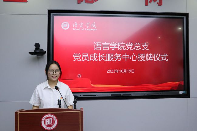 党员代表陆丁铃同学和入党积极分子代表吉志炜同学先后发表讲话。他们表示,自身已充分认识到成立中心的重要性,未来将以中心为平台和载体,不断提高自身综合素质、服务质量及工作效率,为成为更好的自己而不懈奋斗!随后,丁祖保书记为中心授牌,全体与会人员合影留念。