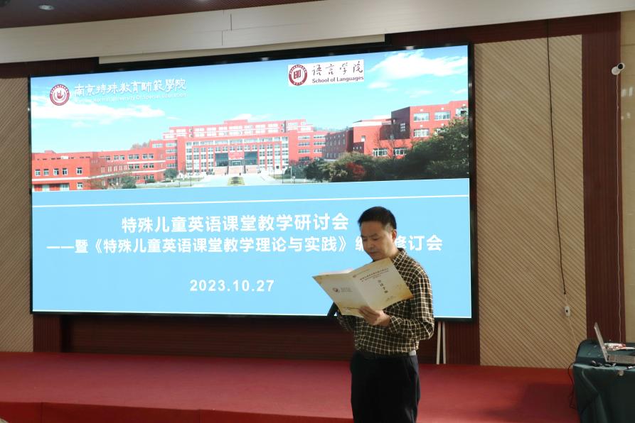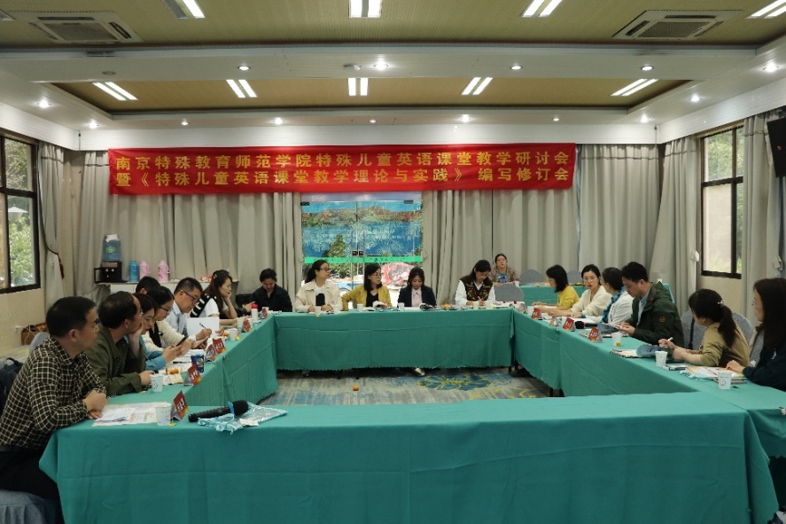 为了更好更快地编写出版《特殊儿童英语课堂教学理论与实践》教材,同时研讨特殊儿童英语课堂教学,加强英语一流本科专业建设,10月27日,bevictor伟德全体教材编写人员以及来自南京师范大学、南京市聋人公司、南京市盲人公司、南京市中电颐和家园小学和南京大学出版社的专家们在南京市八卦洲会议中心交流研讨特殊儿童英语课堂教学,听取各方意见,修订完善教材。