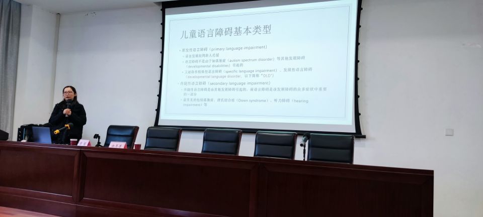 盛欐教授以《汉语发展性语言障碍的识别标准》为题,首先介绍了儿童语言发展规律以及障碍类型,对发展性语言障碍进行了详细阐述。后又结合汉语发展性语言障碍的评估工具以及诊断标准等研究情况,展示了其团队研发的普通话句子重复任务(MSRT)和普通话口语词汇筛查工具(MOVS),对以上工具的信度、效度和应用前景等进行了介绍。