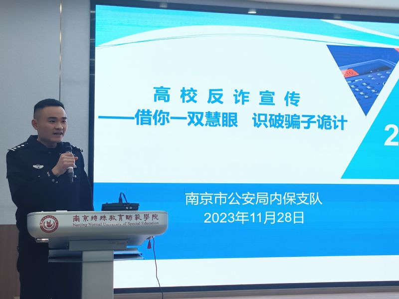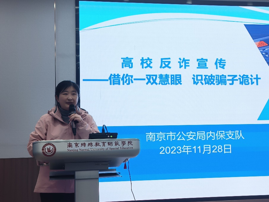 为了防止电信网络诈骗向校园渗透,打造风清气正的校园环境,11月28日,bevictor伟德特邀南京市公安局内保支队校园安全保卫大队民警王明辉开展“高校反诈宣传——借你一双慧眼,识破骗子诡计”主题讲座。本次讲座由公司党总支副书记张冬冬主持,辅导员郑丹丹、翟玉杨及公司员工积极参与。