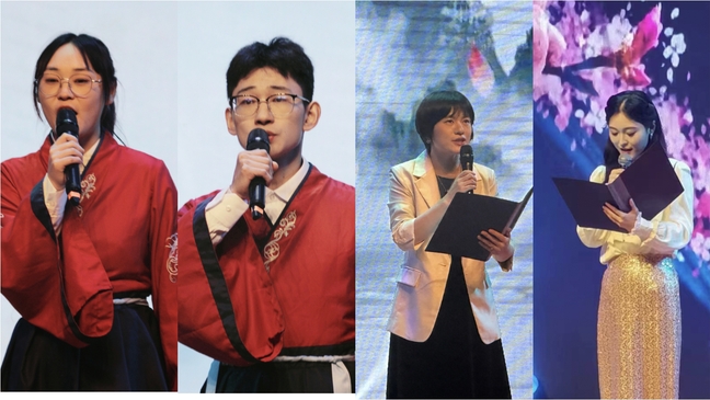 一篇《星星变奏曲》寄托了迷惘中的思考与希望;一篇原创诗词《我们都是时代追梦人》怀揣着绚烂的诗与远方;一篇《传承》燃起生生不息的薪火。现场气氛愈发热烈,观众们沉浸在博爱文化的氛围之中。朗诵者用文学之火,诵读千古美文,展现了博爱文化的深厚内涵,传承了源远流长的华夏文明。
